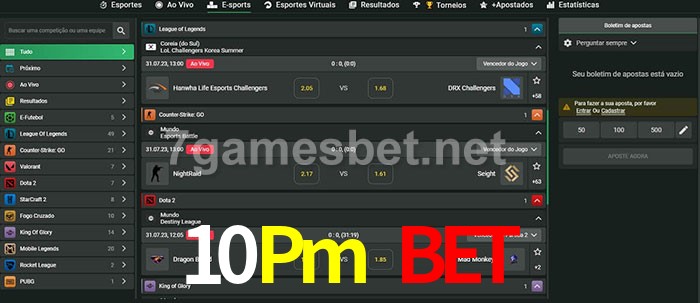 O 10Pm Bet oferece uma grande seleção de opções de apostas em e-sports com probabilidades competitivas